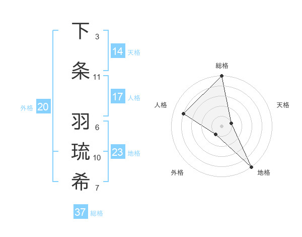 下条 羽琉希さんを姓名の画数から五運を鑑定