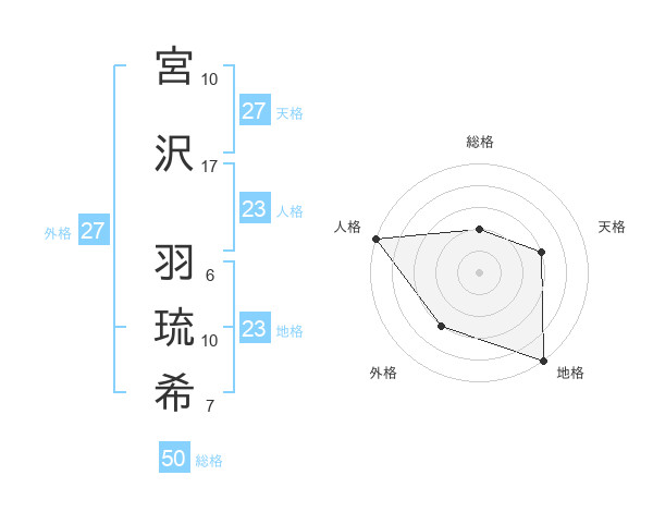 宮沢 羽琉希さんを姓名の画数から五運を鑑定