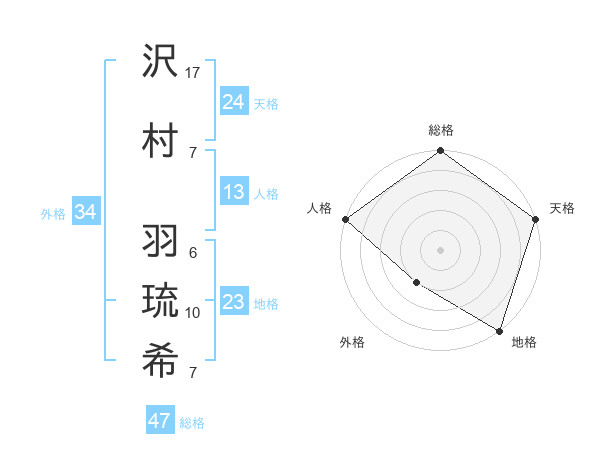 沢村 羽琉希さんの総格は47画の5点!