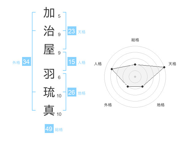 加治屋 羽琉真さんの天格は23画の5点