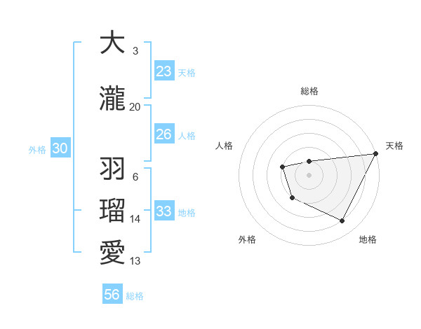 大瀧 羽瑠愛さんの天格は23画の5点!