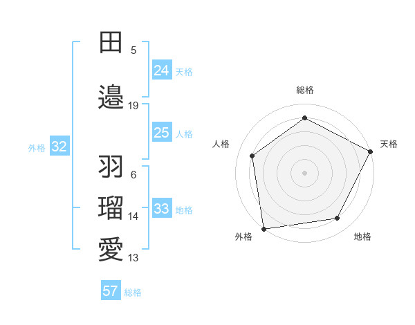 田邉 羽瑠愛さんを姓名の画数から五運を鑑定