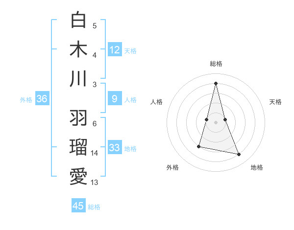 白木川 羽瑠愛さんの総格は45画の4点!