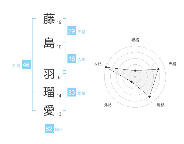 藤島 羽瑠愛さんの天格は29画の4点!