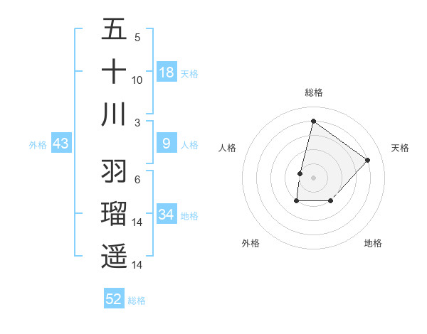 五十川 羽瑠遥さんを姓名の画数から五運を鑑定