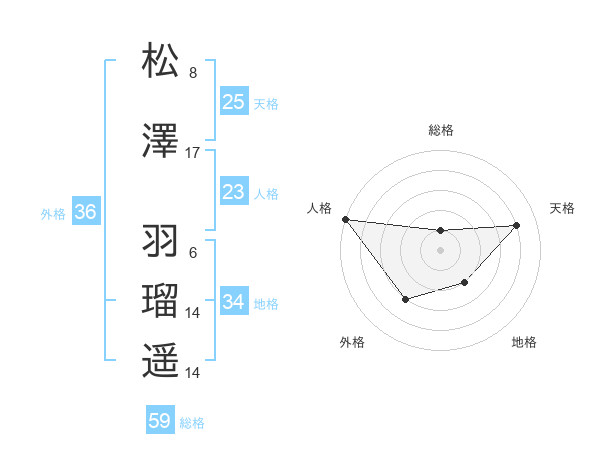 松澤 羽瑠遥さんの総格は59画の1点!