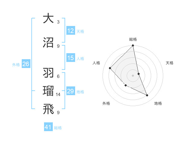 大沼 羽瑠飛さんを姓名の画数から五運を鑑定