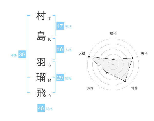村島 羽瑠飛さんを姓名の画数から五運を鑑定