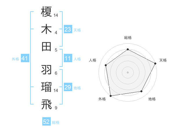 榎木田 羽瑠飛さんの総格は52画の4点!