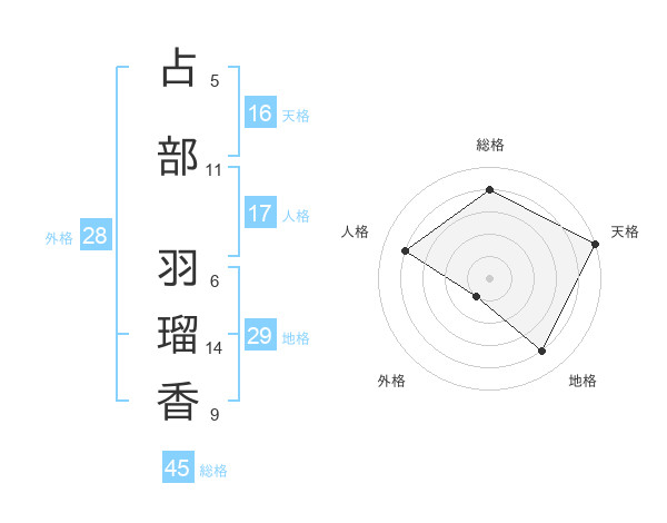占部 羽瑠香さんを姓名の画数から五運を鑑定
