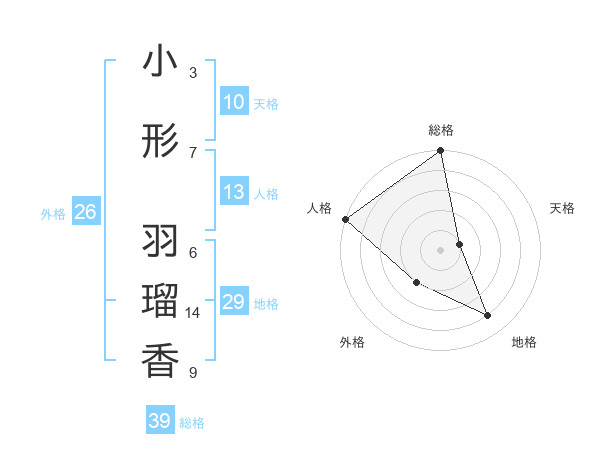 小形 羽瑠香さんを姓名の画数から五運を鑑定