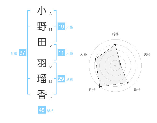 小野田 羽瑠香さんを姓名の画数から五運を鑑定