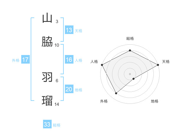 山脇 羽瑠さんを姓名の画数から五運を鑑定