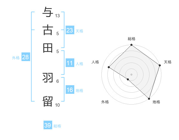 与古田 羽留さんを姓名の画数から五運を鑑定