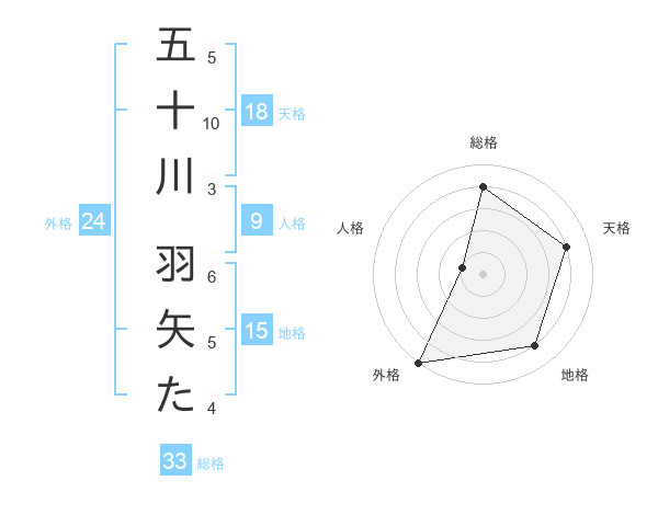 五十川 羽矢たさんを姓名の画数から五運を鑑定