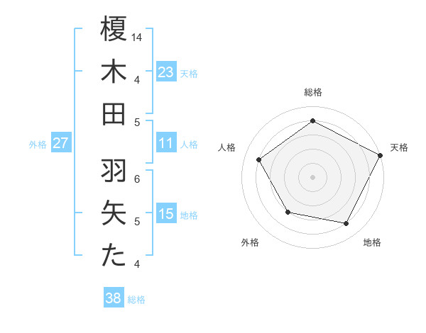 榎木田 羽矢たさんの総格は38画の4点!