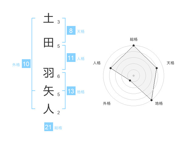 土田 羽矢人さんを姓名の画数から五運を鑑定