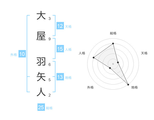 大屋 羽矢人さんを姓名の画数から五運を鑑定
