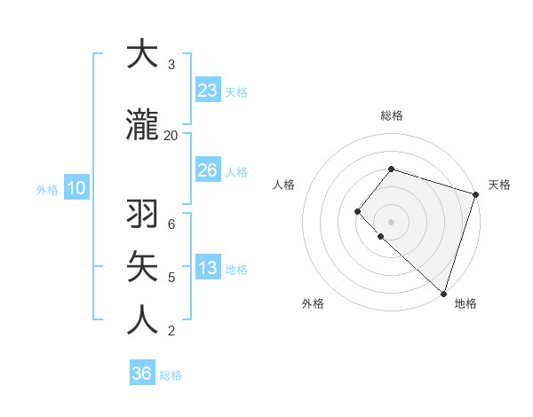 大瀧 羽矢人さんを姓名の画数から五運を鑑定