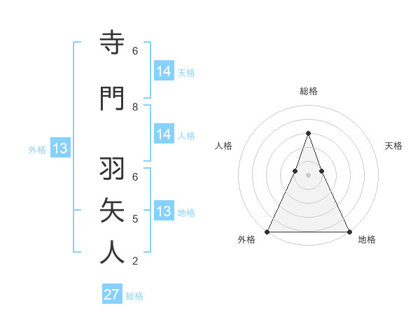 寺門 羽矢人さんを姓名の画数から五運を鑑定