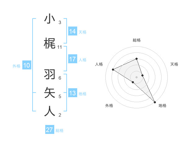 小梶 羽矢人さんを姓名の画数から五運を鑑定