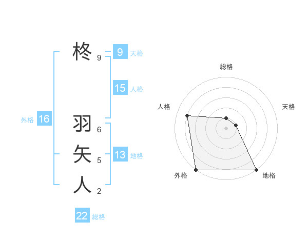 柊 羽矢人さんの地格は13画の5点!