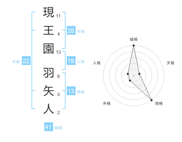 現王園 羽矢人さんの総格は41画の5点!