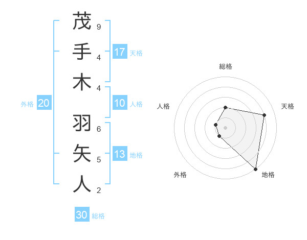 茂手木 羽矢人さんの地格は13画の5点!