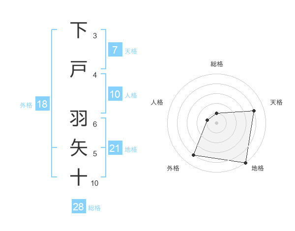 下戸 羽矢十さんを姓名の画数から五運を鑑定