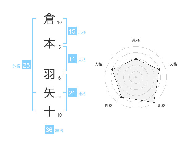 倉本 羽矢十さんを姓名の画数から五運を鑑定