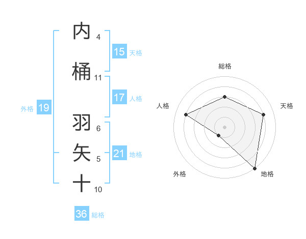 内桶 羽矢十さんを姓名の画数から五運を鑑定