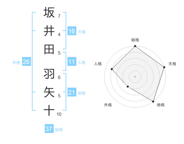 坂井田 羽矢十さんを姓名の画数から五運を鑑定