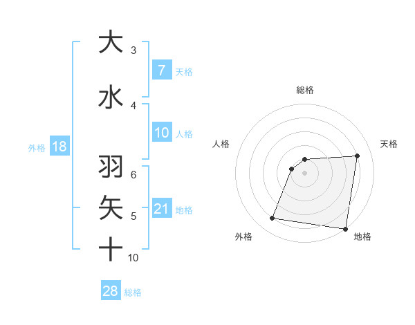 大水 羽矢十さんを姓名の画数から五運を鑑定
