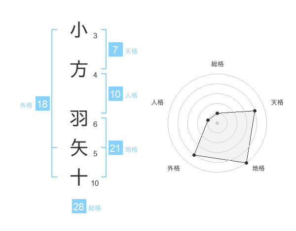 小方 羽矢十さんを姓名の画数から五運を鑑定