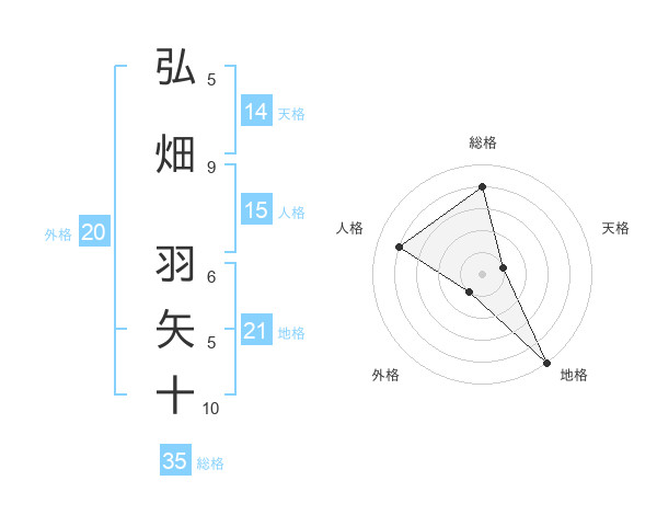 弘畑 羽矢十さんを姓名の画数から五運を鑑定