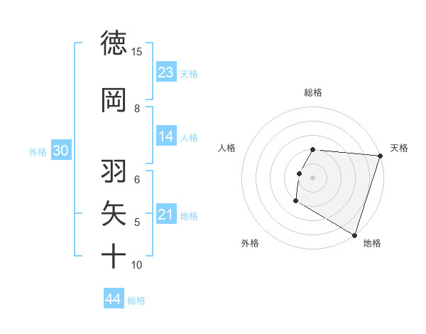 徳岡 羽矢十さんを姓名の画数から五運を鑑定