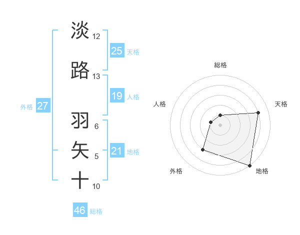 淡路 羽矢十さんの総格は46画の1点!