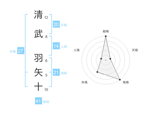 清武 羽矢十さんを姓名の画数から五運を鑑定