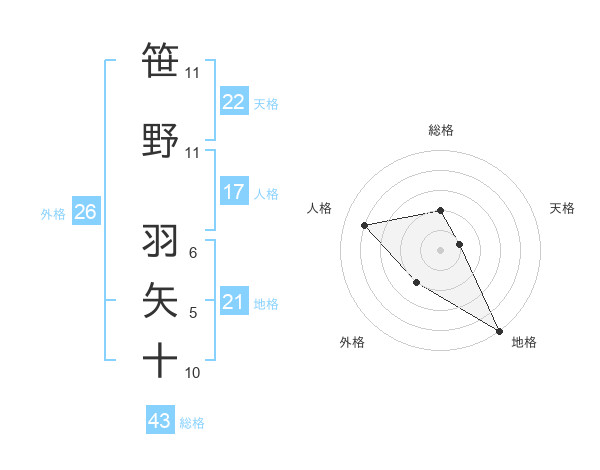 笹野 羽矢十さんを姓名の画数から五運を鑑定