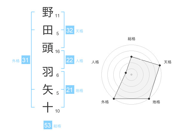 野田頭 羽矢十さんを姓名の画数から五運を鑑定
