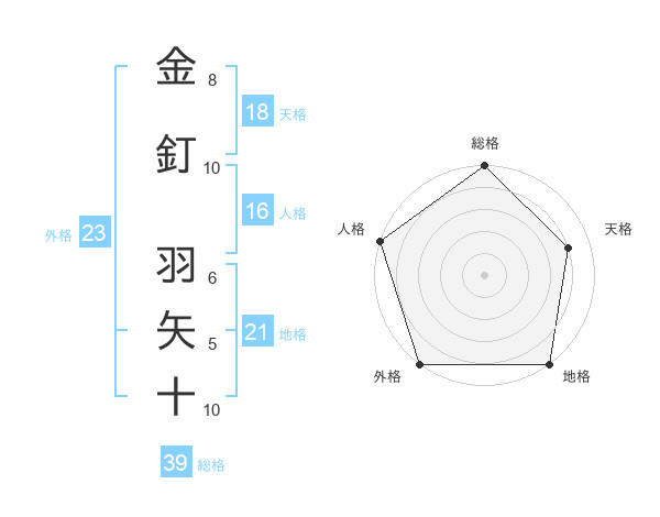 金釘 羽矢十さんの総格は39画の5点!