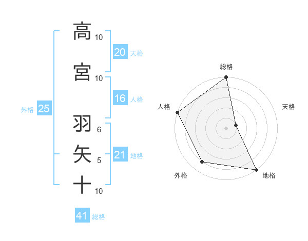 高宮 羽矢十さんを姓名の画数から五運を鑑定