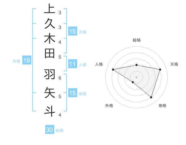 上久木田 羽矢斗さんを姓名の画数から五運を鑑定