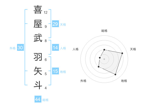喜屋武 羽矢斗さんの総格は44画の2点!