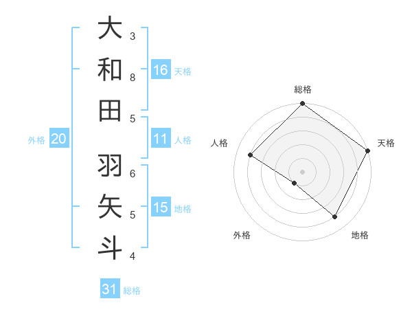 大和田 羽矢斗さんを姓名の画数から五運を鑑定