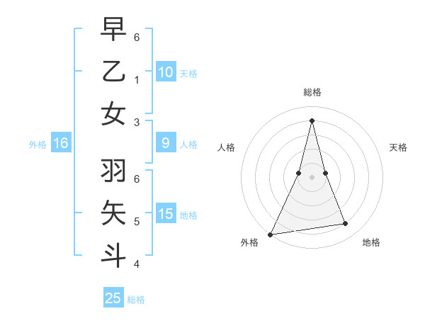 早乙女 羽矢斗さんを姓名の画数から五運を鑑定