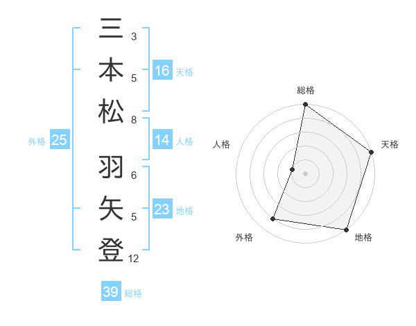 三本松 羽矢登さんの総格は39画の5点!