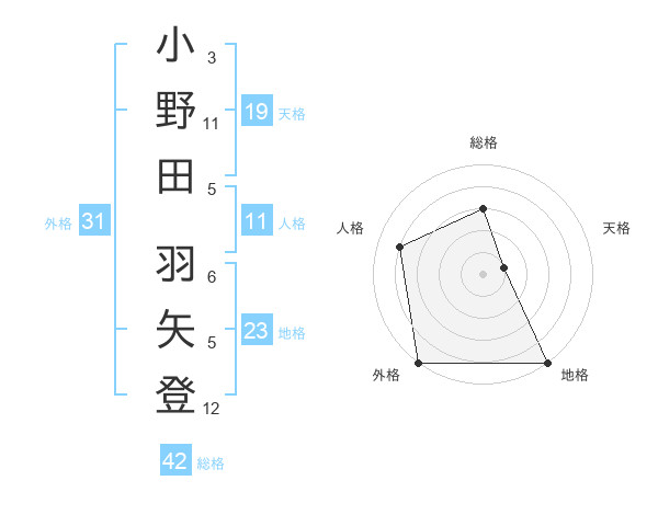 小野田 羽矢登さんの外格は31画の5点!