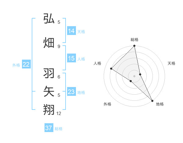 弘畑 羽矢翔さんの総格は37画の5点!