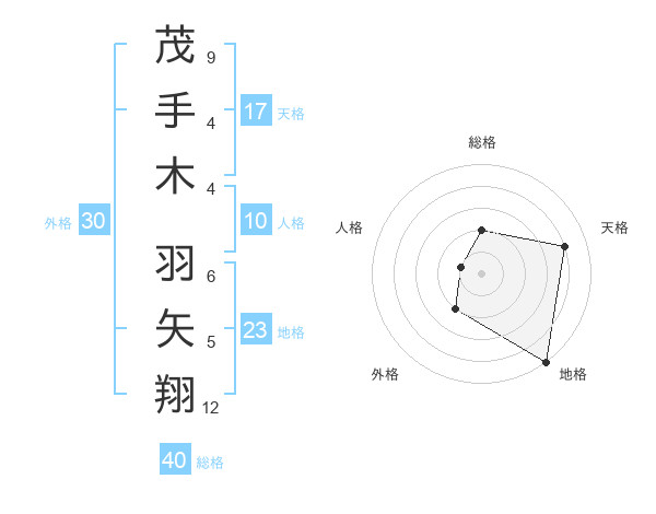 茂手木 羽矢翔さんを姓名の画数から五運を鑑定